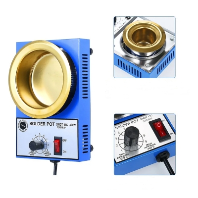 Печь для плавления олова Sawadot с мощностью 300 Вт подходит для лужения, зачистки проводов, жгутов проводов и печатных плат. Она оснащена регулируемым термостатом, позволяющим точно настраивать температуру в диапазоне от 200 до 450 ℃. Печь имеет нержавеющую стальную банку с титановым покрытием, которое отличается высокой термостойкостью, стойкостью к коррозии и долговечностью.