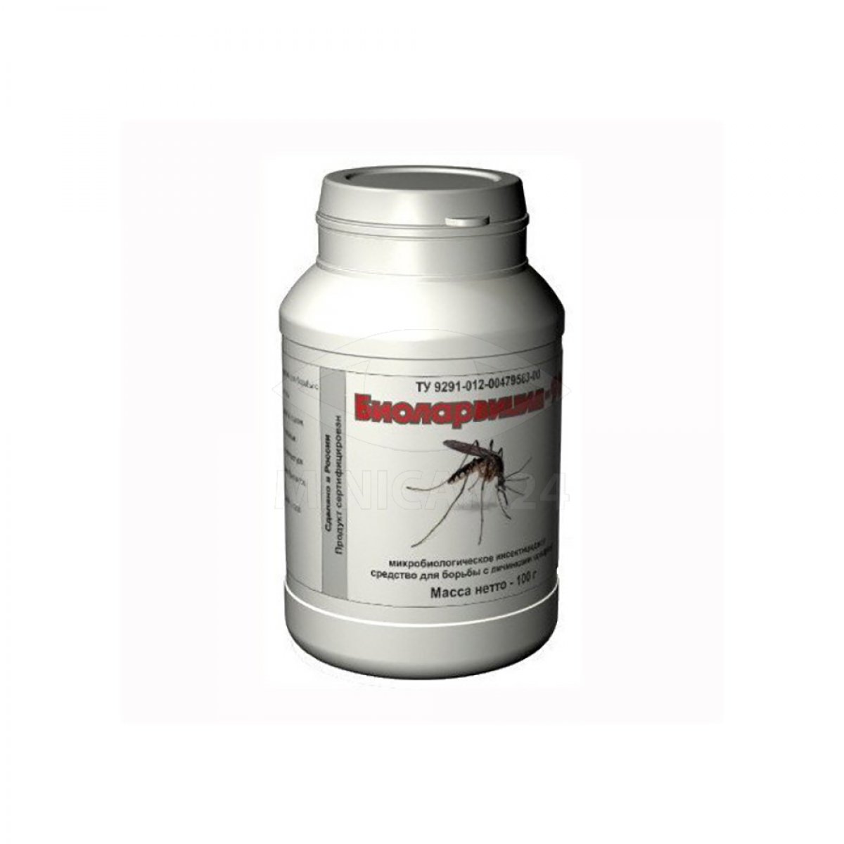 Уничтожитель личинок комаров биологический Биоларвицид-100 – биологический инсектицид, предназначенный для борьбы с распространением комаров, способных переносить малярию или другие заболевания. Производится в виде порошка белого цвета, который состоит из особых видов бактерий, а также наполнителя. При попадании в воду бактерии активизируются и размножаются. Данные бактерии, попадая в пищеварительный тракт личинок комаров способны вызывать нарушения не совместимые с жизнью, после чего личинки гибнут. Станет полезен для людей, имеющих дачные или жилые дома возле водоемов, особенно со стоячей водой, где происходит интенсивное размножение комаров.
